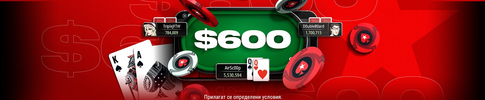 Включете се отново в екшъна на PokerStars със специален бонус от 100% при депозит до $600.